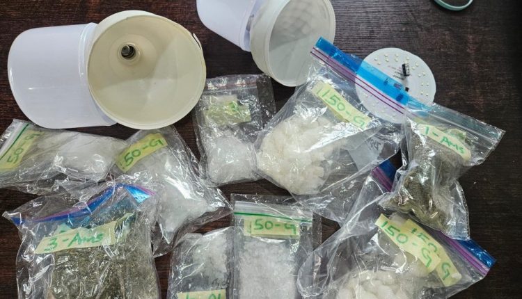 During the search, police officers uncovered illicit substances carefully concealed inside electric energy-saving bulbs.