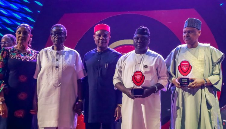 L-R: Chief Mrs Patricia Nwobodo, Chief Jim Nwobodo (former Governor of Enugu State), His Excellency Peter Mba, Executive Governor of Enugu State, His Excellency Agbu Kefas, Executive Governor of Taraba State, and Mohammed Idris, Honourable Minister of Information and National Orientation, at the 2026 Vanguard Media Awards held on Friday at the Eko Hotel & Suites, Victoria Island, Lagos. Pix Adnan Samaha