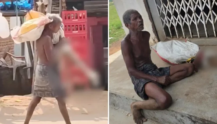 In the harrowing clip, a shirtless and shoeless Munda is seen carrying the skeletal remains, wrapped in a shawl, down the street in broad daylight, before dumping them outside the entrance to a branch of the Odisha Grameen Bank in the Keonjhar district of Odisha — about 180 miles west of Kolkata.