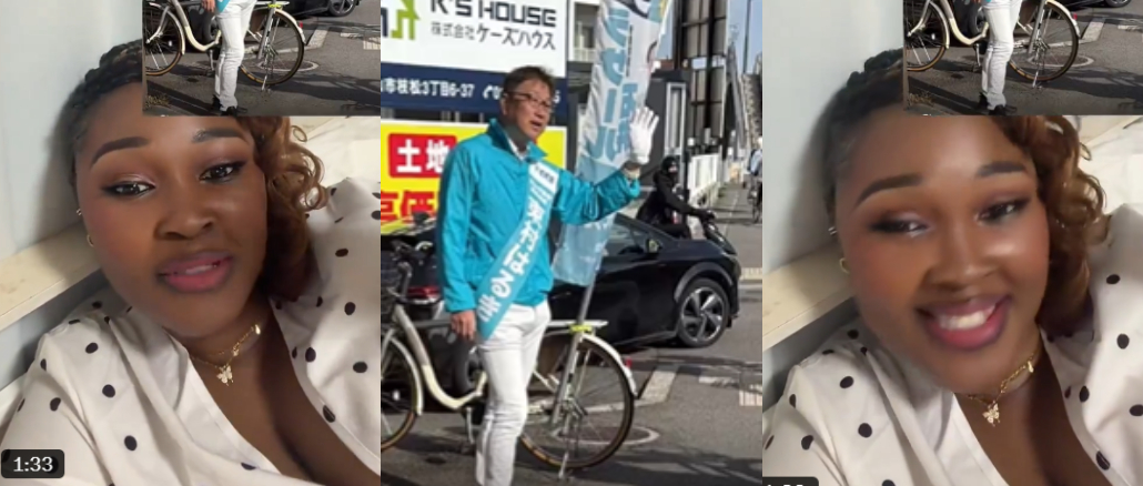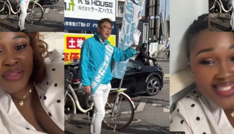 A Nigerian lady based in Japan has gone viral after reacting to the reported victory of a governorship candidate she previously spotted campaigning on the streets with a bicycle.